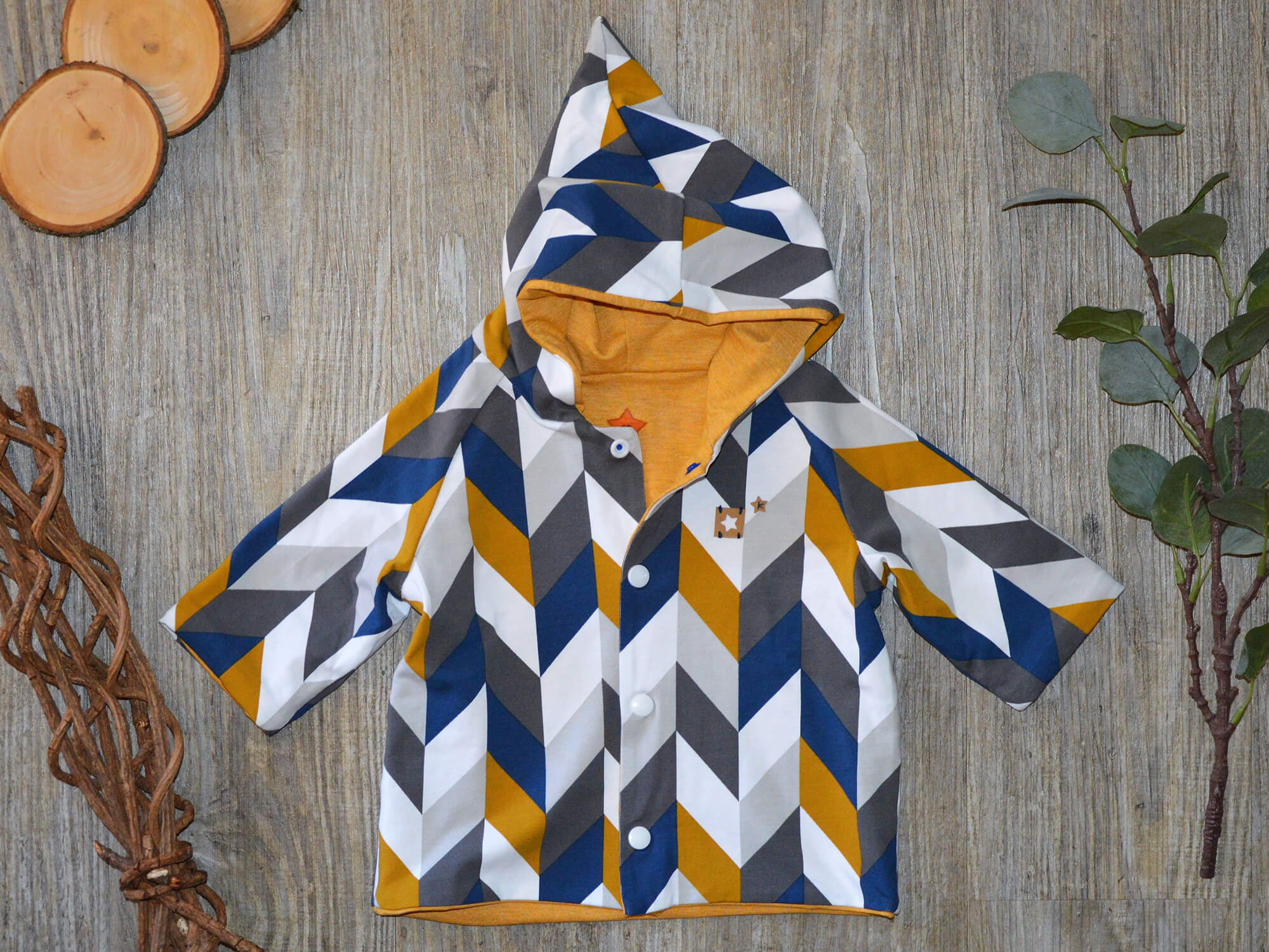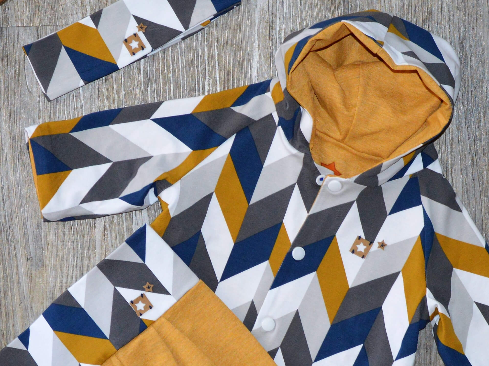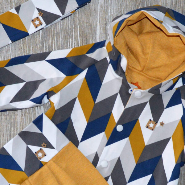 Set „Zick Zack“ aus Raglanjacke + Jogger Pants + Stirnband – Gr. 68