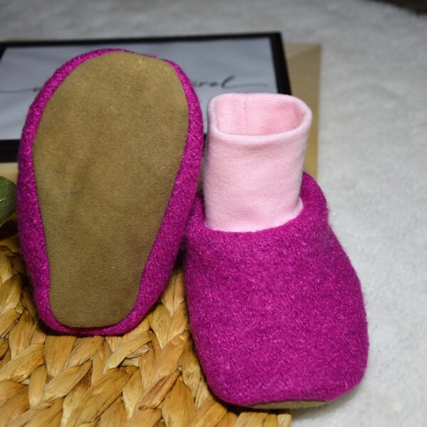 • Patschen aus Wollwalk mit Jersey gefüttert und Bündchen für guten Halt